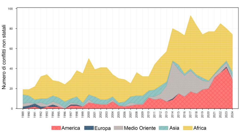 Molti conflitti contemporanei sono, in realtà, guerre civili o conflitti asimmetrici che coinvolgono gruppi armati non statali (come i jihadisti nel Sahel o i cartelli del narcotraffico in Messico), ma che hanno un impatto devastante.