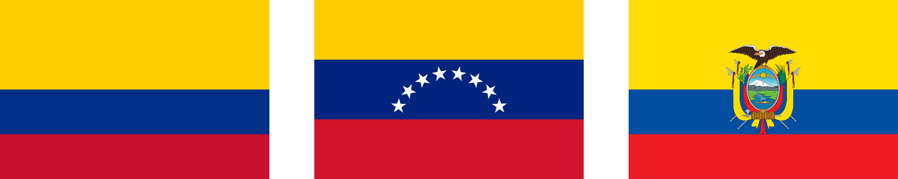 Tuttavia, pur onorando l’eredità comune, ogni Stato ha poi differenziato la propria bandiera da quelle degli Stati fratelli. Se Ecuador e Colombia hanno un vessillo quasi identico, in cui la banda gialla è più larga delle altre due, la bandiera del Venezuela adotta invece tre bande orizzontali di pari larghezza.