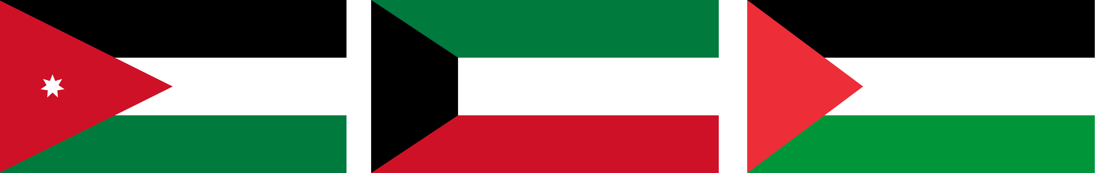 Sta di fatto che oggi, a testimonianza dell’unità storica e culturale della regione, molti Paesi arabi utilizzano variazioni di questo schema, spesso difficili da distinguere e ricordare: Giordania, Palestina, Kuwait, Egitto, Iraq, Yemen, Sudan, Siria, Emirati Arabi Uniti.