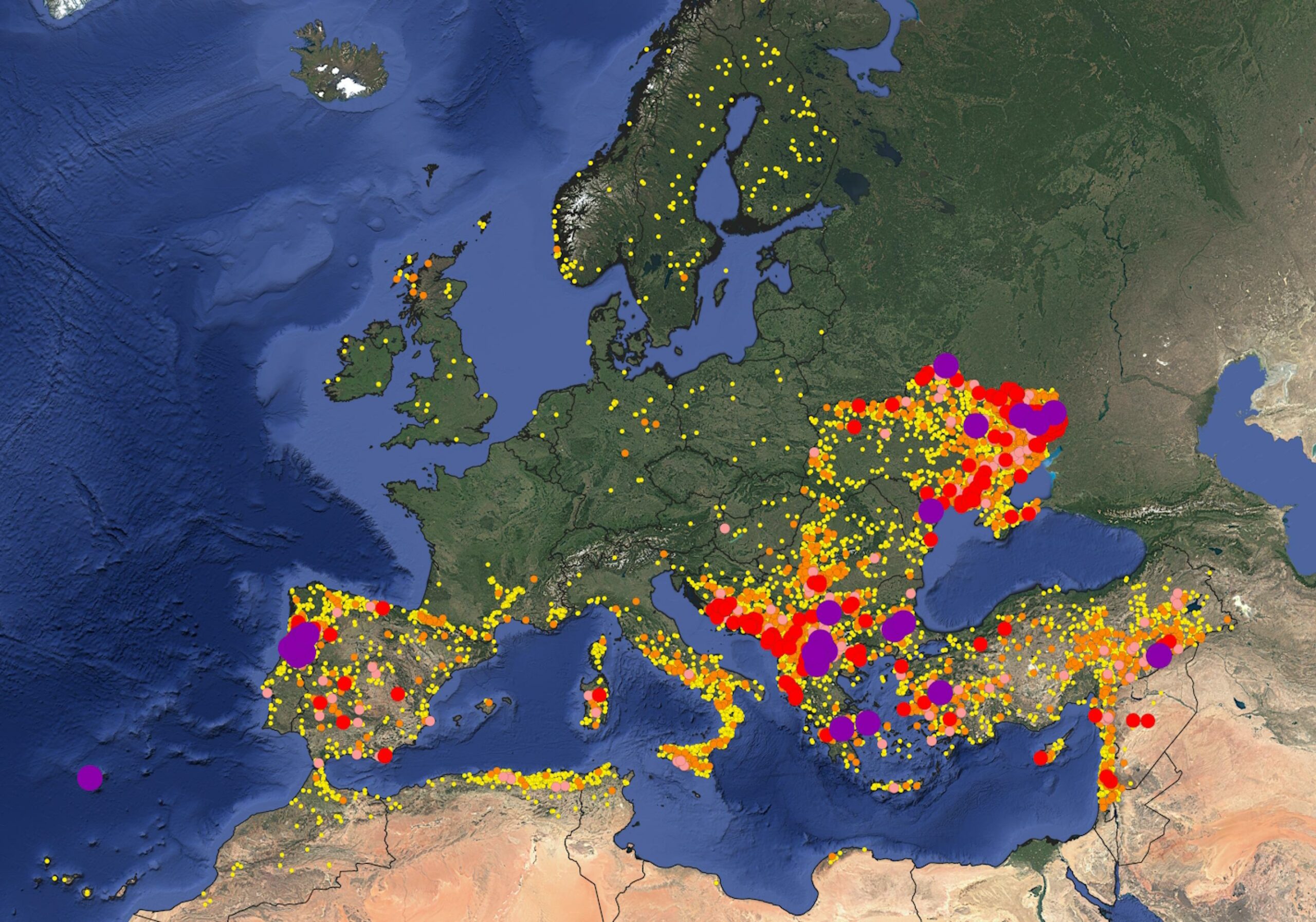 > i punti viola oltre i 5000 ettari.